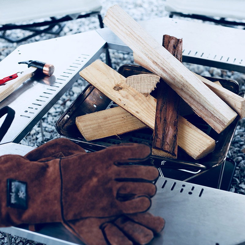 焚き火台はセットのしやすさと持ち運びやすさでスノーピークの物をご用意しております。