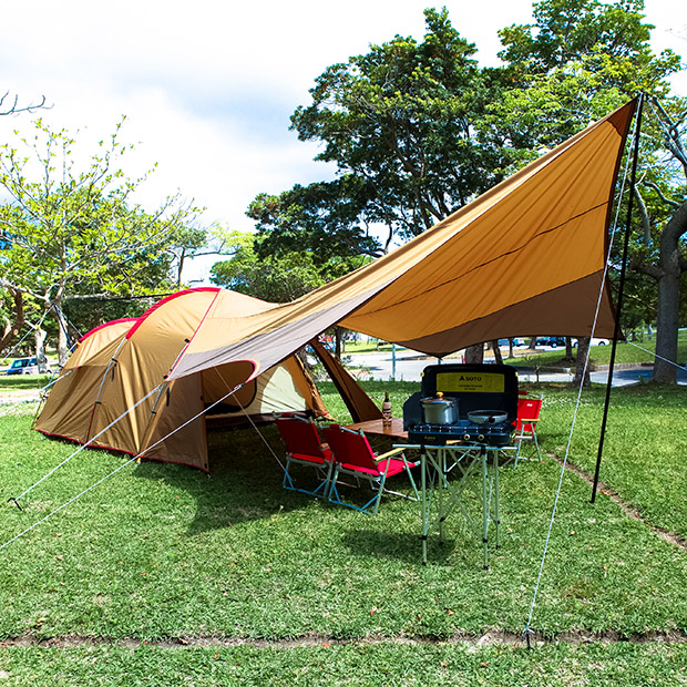 ※タープを小川張りする場合、キャンプサイトによっては1区画を超える場合が有りますので事前にキャンプ場へご確認ください。